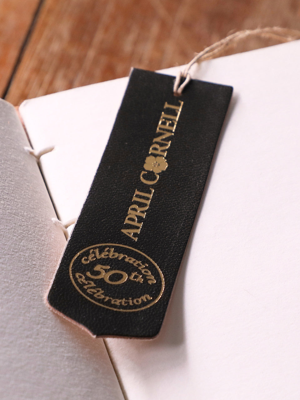Recycled cotton paper Printed cardboard binding 6x4" 48 Pages Includes embossed leather 50th Anniversary commemorative bookmark