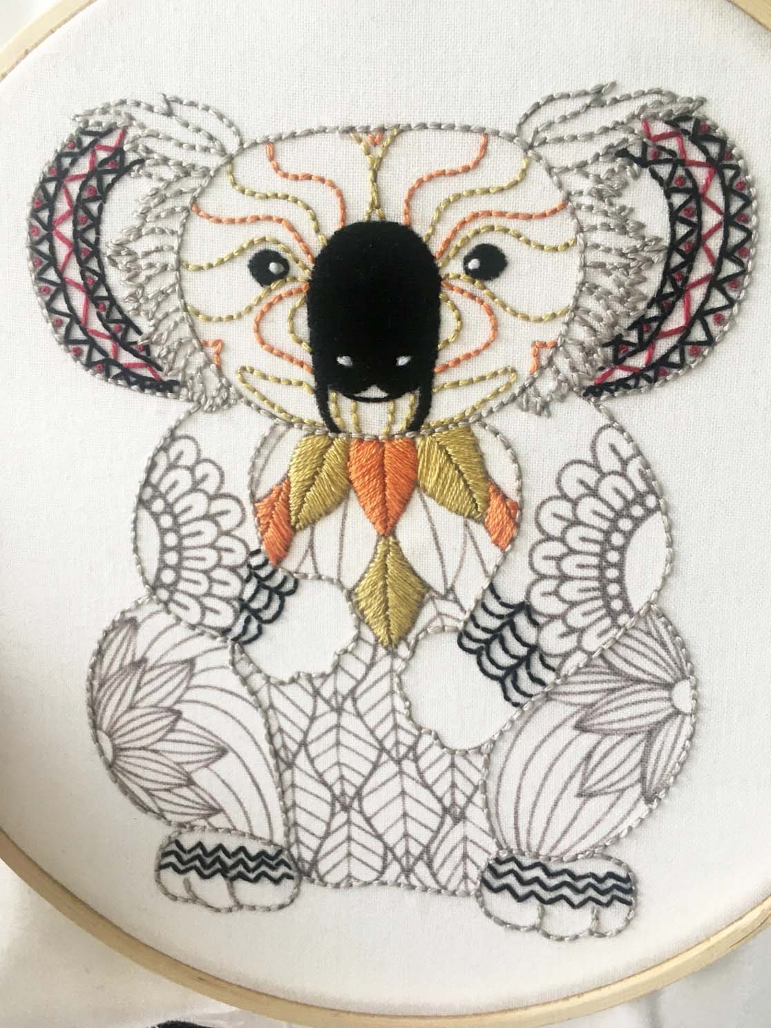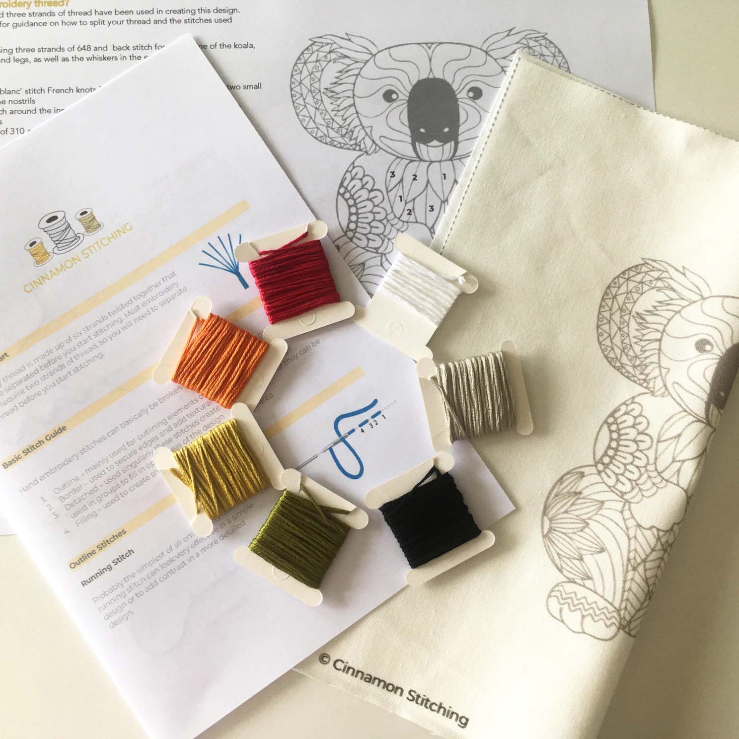 This colourful hand embroidery kit contains everything you need to stitch this koala and complete this lovely design.