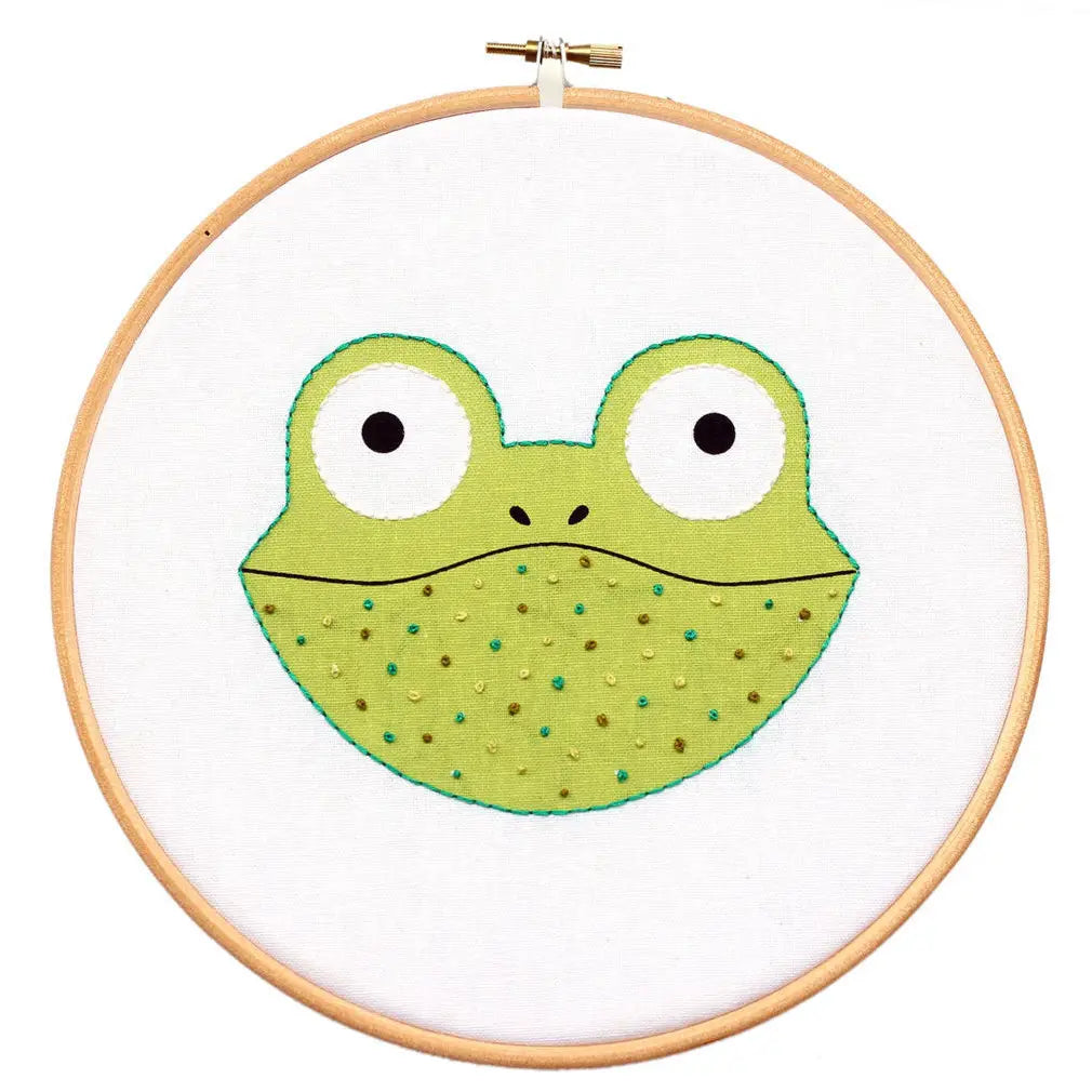 Froggie is a screen printed pattern using basic embroidery stitches.
