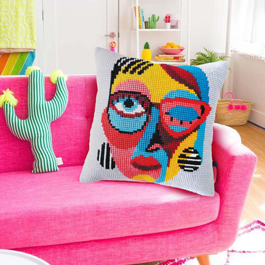 Needlepoint Pillow Kit Hot Summer Face Stamped Needlepoint Kit 16x16 inches