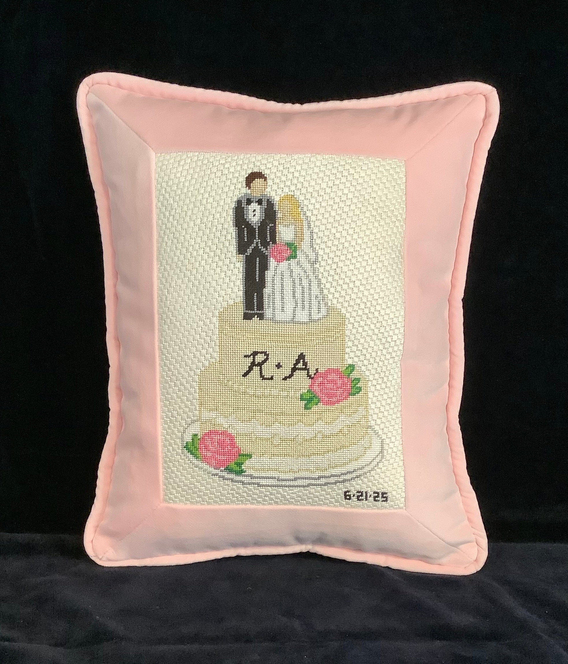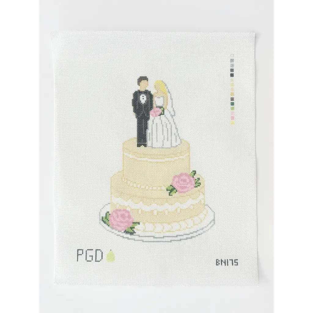 Wedding Cake Pink Roses Needlepoint Hand Painted Canvas 18 Mesh By Perrin Gentry Designs