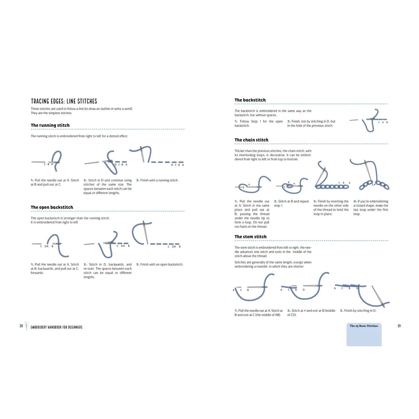 It starts with a detailed overview of selecting fabric and thread, preparing materials, transferring designs, and mastering key techniques. At its core, the book offers clear instructions for 25 common stitches and their variations, each supported by easy-to-follow diagrams.