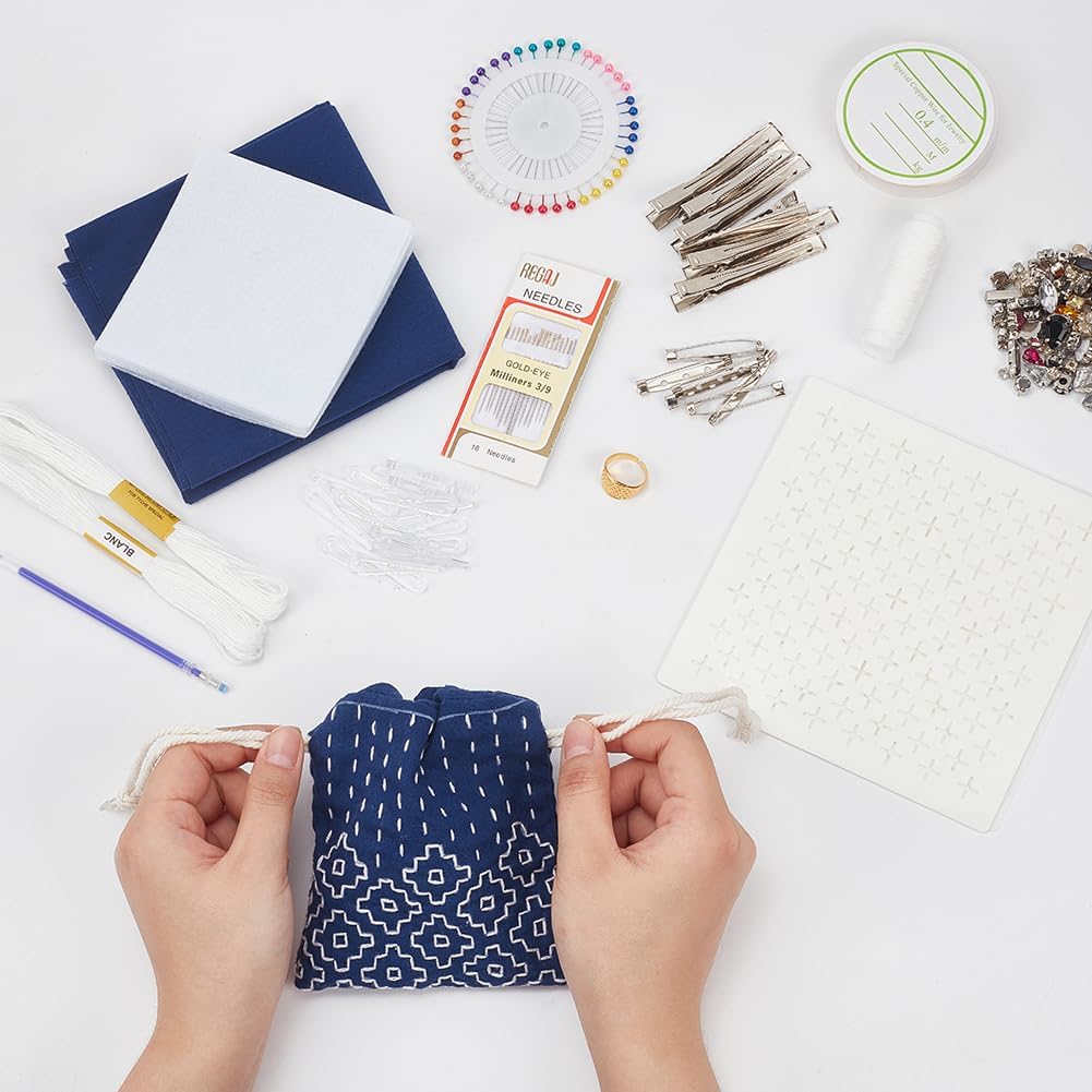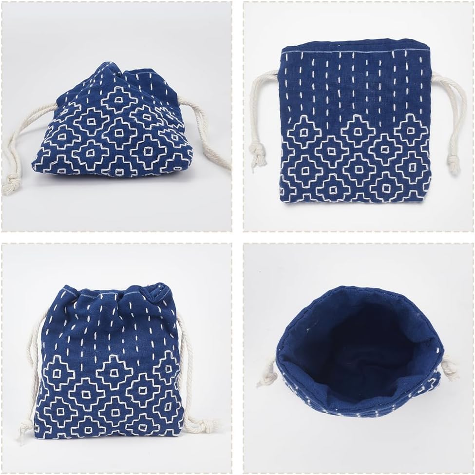 Sashiko Small Drawstring Bag Embroidery Kit ~ Set of 3~DIY Kit with Pattern
