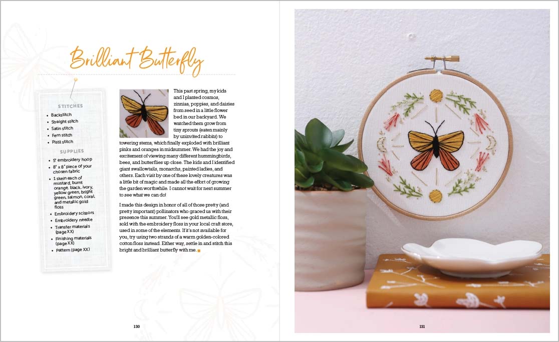 • 16 cheerful embroidery projects that build your skills as you work through them • A sunny sampler project to help you practice each stitch • Easy-to-follow stitch diagrams • Inspiring quotes and creative prompts to enhance the relaxing benefits of stitching • Expertly designed full-sized patterns for each project