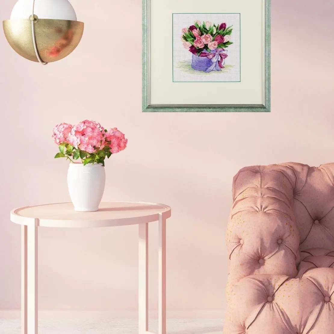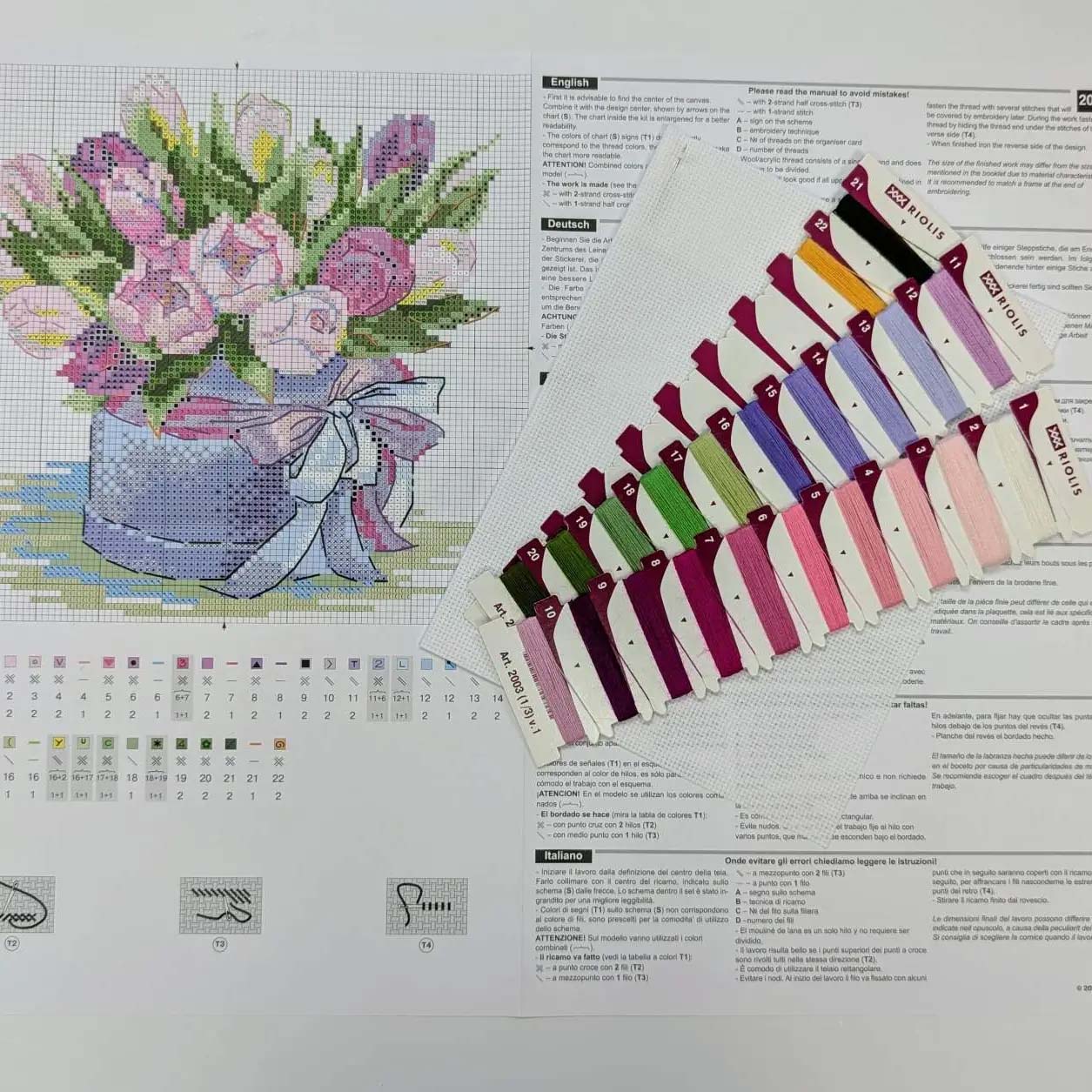 Tulips Hat Box Bouquet by Riolis Counted Cross Stitch Kit