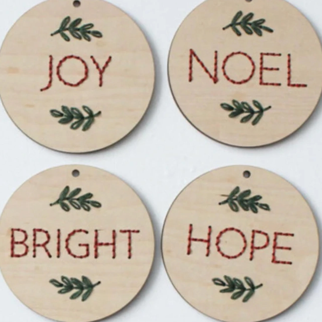 Set of 9 Holiday Word Ornaments ORNAMENT EMBROIDERY KIT By HNB House Embroidery