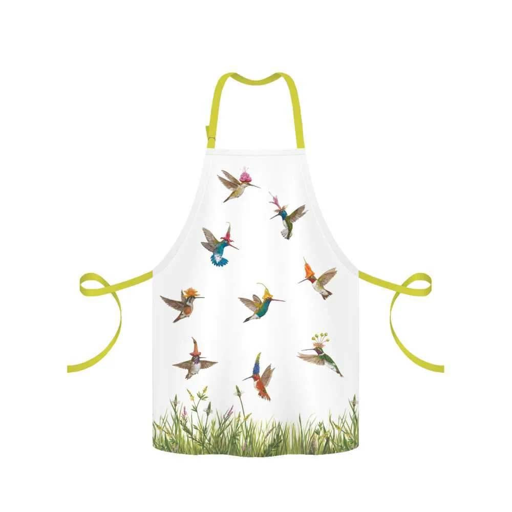 The Meadow Buzz Apron is your companion for all your culinary adventures with whimsical hummingbird artwork by Vicki Sawyer.