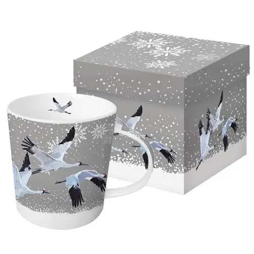 Snowfall Cranes Gift-Boxed Contemporary Bone China Mug