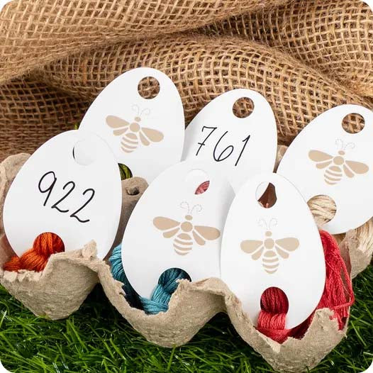 Count all you want with these egg-shaped floss drops, as long as they are stitch counts! These cute Farm Fresh Eggs Floss Drops are made with durable plastic and have two holes for floss and floss rings.
