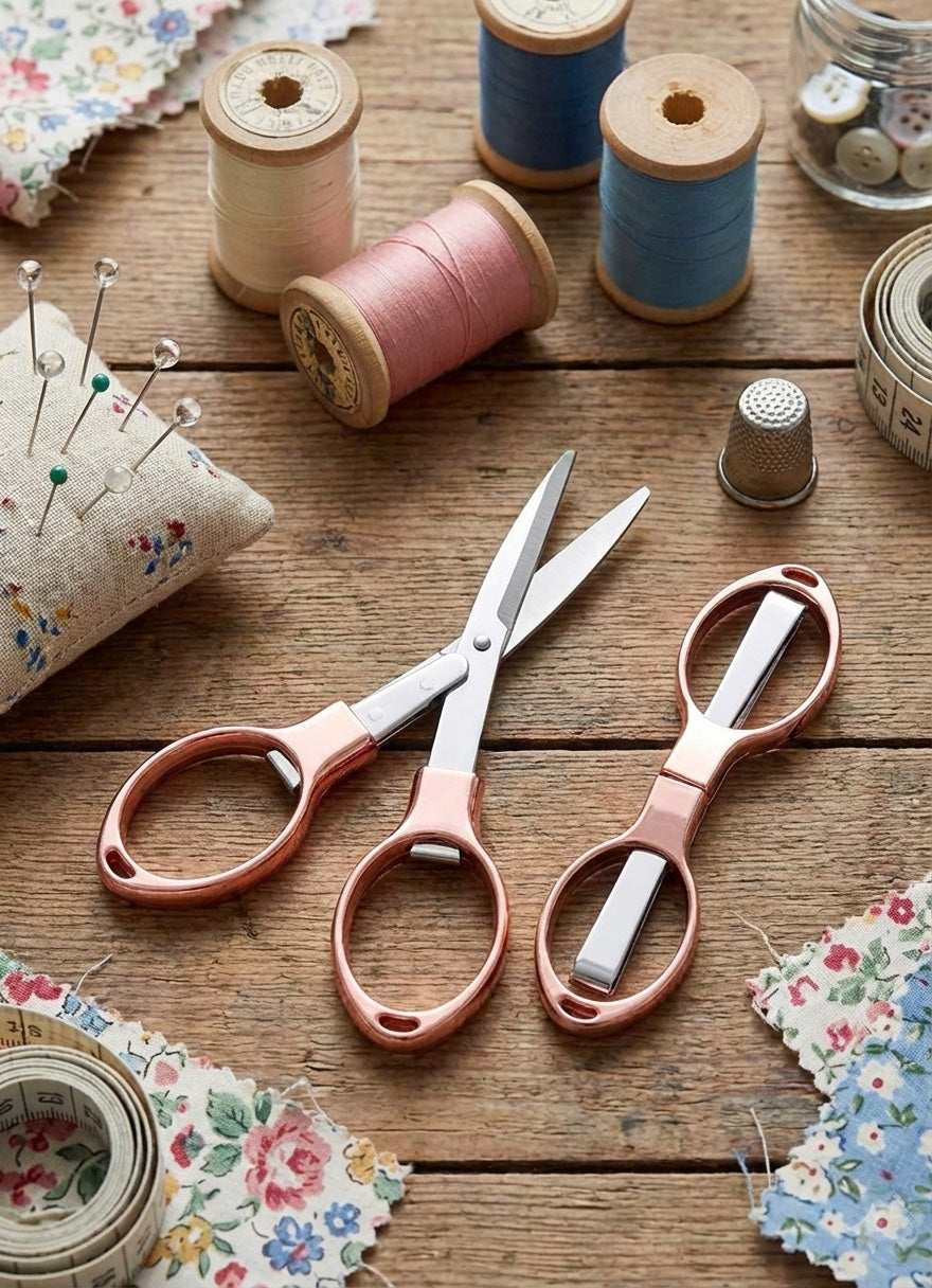 Why We Love Them: We've all had that moment of reaching into a bag and getting poked by sharp scissors. These folding snips solve that problem completely! They are the "transformer" of the stitching world—tiny and safe when stored, but sturdy and sharp when you need them. Plus, having color options means you can match them to your other favorite accessories.